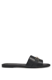 DETAILS Emberlyn_Slid10_VCHB - 50542219 Featuring a padded insole, these BOSS Womenswear slides add a refined touch to everyday looks. Leather uppers with gold-tone Double-B-monogram hardware. Fastening top: Slip-on Fully lined Sole: Other material Packaging: Box QUALITY & CARE INSTRUCTIONS Upper material: 100% Cow leather, Lining: 100% Sheepskin, Sole: 100% Leather, Innersole: 100% Sheepskin