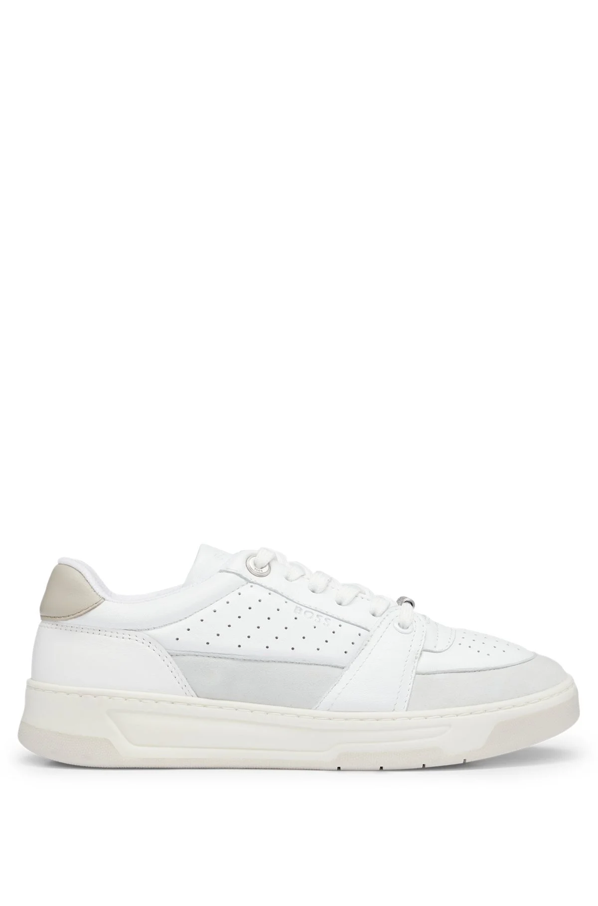DETAILS Baltimore_Tenn_nasdp - 50517252 Versatile trainers crafted in soft leather with rich suede trims, branded accents and perforated details by BOSS. Laces Packaging: Box QUALITY & CARE INSTRUCTIONS Upper material: 100% Cow leather, Lining: 100% Polyester, Sole: 100% Rubber, Facing: 100% Goat leather, 100% Cow leather, Innersole: 90% Polyamid, 10% Polyurethane
