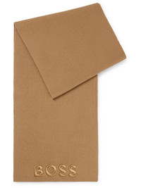 logo-embroidered virgin-wool scarf Highlights - Beige - Virgin wool - Ribbed knit - Embroidered logo - Finished edge Imported Composition Virgin Wool 100% SIZE & FIT Measurement LENGTH 70.86 in(180 cm) WIDTH 11.81 in(30 cm)