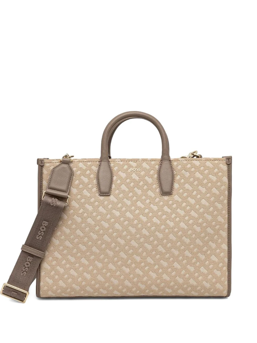 logo-plaque tote bag Highlights - Beige - Logo pattern - Top handles - Detachable shoulder strap - Leather trim - Zip fastening Imported Composition Outer: Cotton 100% Lining: Polyester 100% SIZE & FIT Measurement DEPTH 5.51 in(14 cm) HANDLE 9.84 in(25 cm) HEIGHT 10.62 in(27 cm) WIDTH 14.17 in(36 cm)