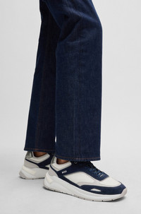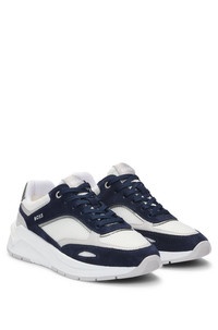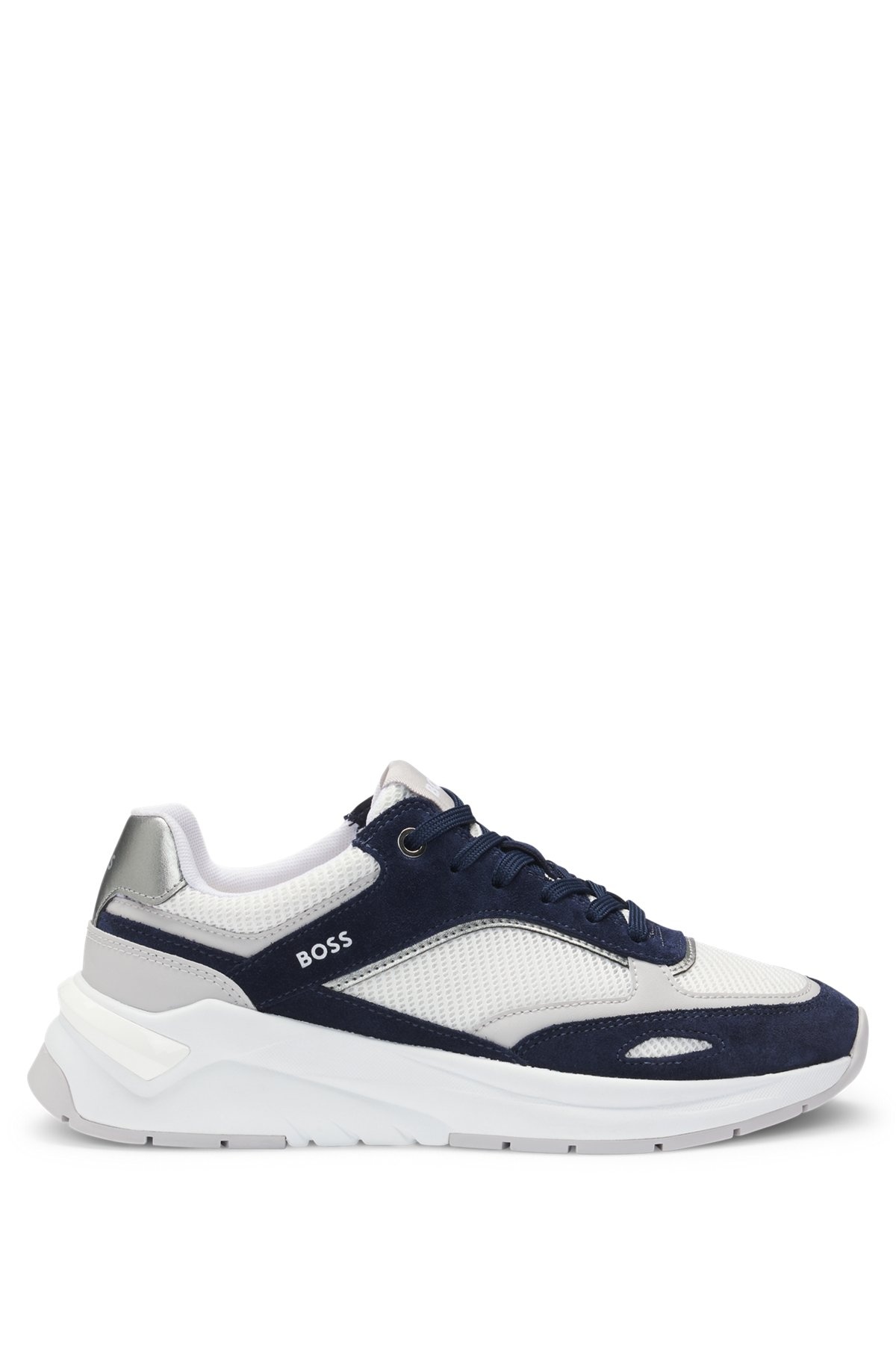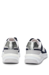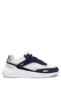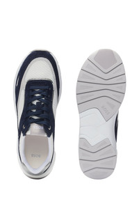 DETAILS Skylar_Runn_memxmt - 50530254 Modern running-style trainers by BOSS. Featuring metallic accents for a feminine touch, this pair is crafted in mesh, suede and synthetic coated fabric. Synthetic coated fabric, sometimes referred to as faux leather, is a fabric designed to resemble real leather, and/or display a matte, glossy, smooth, or textured, coated appearance. Laces Sole: Other material Packaging: Box QUALITY & CARE INSTRUCTIONS Upper material: 100% Polyester, Lining: 100% Polyester, Sole: 70% Ethylene vinyl acetate, 20% Rubber, 10% Thermoplastic polyurethane , Facing: 100% Cow leather, 64% Regenerated leather, 36% Polyurethane, Innersole: 55% Polyurethane, 45% Polyester
