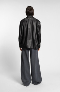 SIZE AND FIT The model wears a size 4 and is 5'9" tall with a, 29" chest, 23" waist and 35" hips. DETAILS Crafted in rich nappa leather, this BOSS Womenswear jacket embraces a long biker silhouette. Cut to a straight fit. Modern side belts. Relaxed fit Notched lapels Fastening top: Zip closure Pockets top: Zip pockets Zip cuffs Standard length Fit back length: 71 cm (28 inches) Sarica - 50547474 QUALITY & CARE INSTRUCTIONS Reduced Dry Clean Do Not Bleach Material: 100% materialcode.SL, Lining: 100% Polyester Do Not Tumble Dry Do Not Wash Do Not Iron