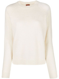 long-sleeve knit sweater cream white knitted construction crew neck long sleeves ribbed cuffs ribbed band collar gold-tone logo plaque Imported Composition Alpaca 46%, Polycarbamide 23%, Cotton 16%, Modal 13%, Elastane 2% Washing instructions Hand Wash