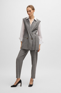 SIZE AND FIT The model wears a size 4 and is 5'10" tall with a, 30" chest, 23" waist and 35" hips. DETAILS Beniza - 50520677 A contemporary blouse by BOSS Womenswear. Crafted in pinstripe fabric, this long-sleeved design is detailed with a point collar. Regular fit Point collar Long sleeves Button cuffs Fit back length: 63 cm (25 inches) QUALITY & CARE INSTRUCTIONS Do Not Bleach Do Not Tumble Dry Quality: 100% Cotton Iron Low Heat Reduced Dry Clean Machine Wash Cold Gentle