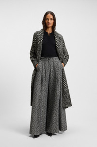 SIZE AND FIT The model wears a size S and is 5'10" tall with a, 33" chest, 23" waist and 34" hips. DETAILS Knitted with a bold jacquard pattern, this BOSS Womenswear cardigan is made with textured wool for a characterful outcome. Long length. Double-faced belt. Oversized fit Neckline: Shawl lapels Long sleeves Fit back length: 104 cm (41 inches) Fabrinta - 50547886 QUALITY & CARE INSTRUCTIONS Do Not Tumble Dry Iron Low Heat Do Not Bleach Reduced Dry Clean Quality: 55% Mohair, 30% Polyamide, 15% Wool Hand Wash Only