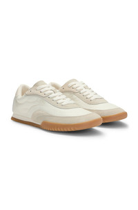 DETAILS Carlynn_Lowp_nysdW - 50542185 With subtle branding throughout, these BOSS Womenswear trainers make a modern statement with their hybrid uppers. Soft fabric offset by rich suede. Laces Sole: Other material Packaging: Box QUALITY & CARE INSTRUCTIONS Upper material: 100% Polyamid, Lining: 100% Polyester, Sole: 60% Rubber, 40% Ethylene vinyl acetate, Facing: 100% Cow leather, Innersole: 100% Polyester