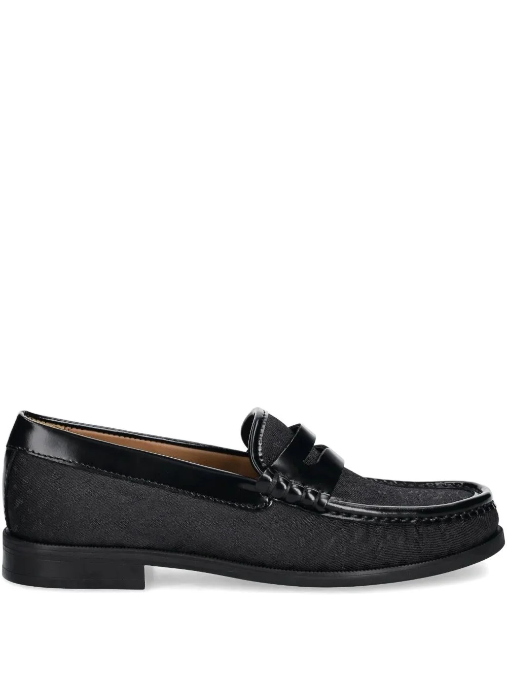 Lycia loafers Highlights - Black - Slip-on style - Rubber sole - Penny slot - Moc stitching Imported Composition Outer: Fabric 100%, Calf Leather 100% Lining: Calf Leather 100% Sole: Rubber 100%