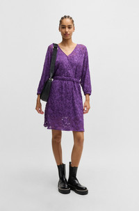 SIZE AND FIT The model wears a size S and is 5'9" tall with a, 32" chest, 23" waist and 35" hips. DETAILS C_Desdemona - 50519432 A feminine dress, with a wrap bodice and batwing sleeves, by BOSS. This piece is crafted in macrame lace with an elasticated waistband. Regular fit 3/4 sleeves Fully lined QUALITY & CARE INSTRUCTIONS Do Not Bleach Do Not Tumble Dry Machine Wash Cold Do Not Dry Clean Iron Low Heat Quality: 100% Polyester, Inner dress: 96% Polyester, 4% Elastane