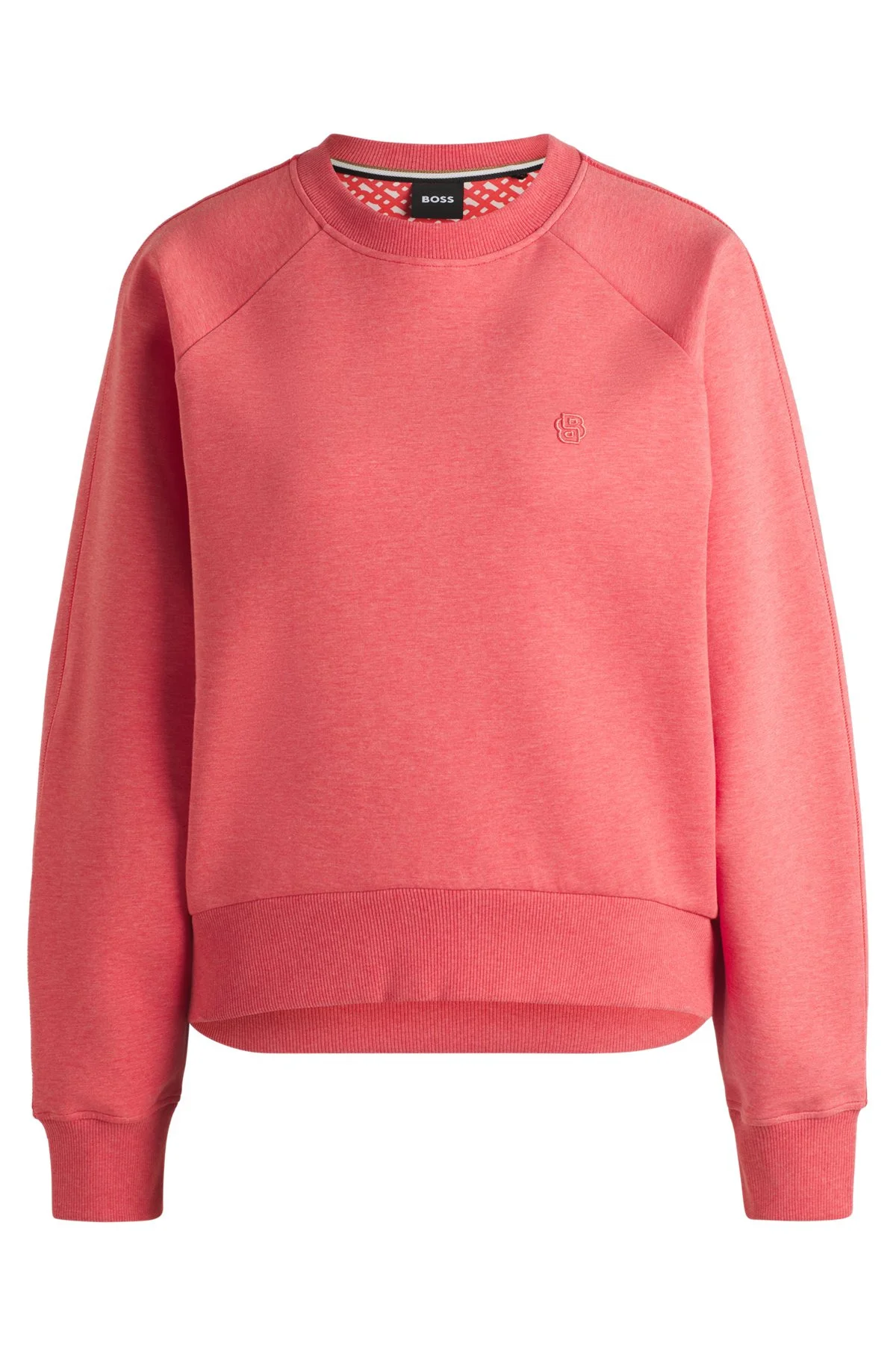 DETAILS Evreni - 50537492 With raglan sleeves for a comfortable fit, this BOSS Womenswear sweatshirt is elevated by an embroidered Double B monogram. Crafted in soft cotton. Neckline: Crew neck Long sleeves Ribbed cuffs Fit back length: 65 cm (26 inches) QUALITY & CARE INSTRUCTIONS Machine Wash Cold Gentle Do Not Tumble Dry Iron Low Heat Quality: 82% Cotton, 14% Polyester, 4% Elastane Do Not Bleach Do Not Dry Clean