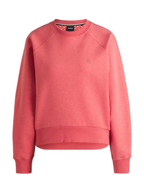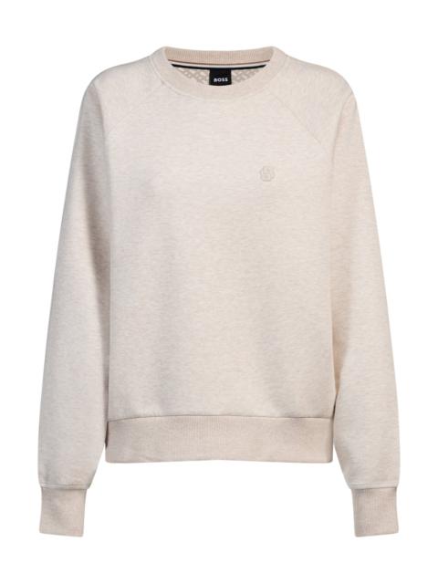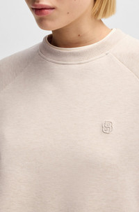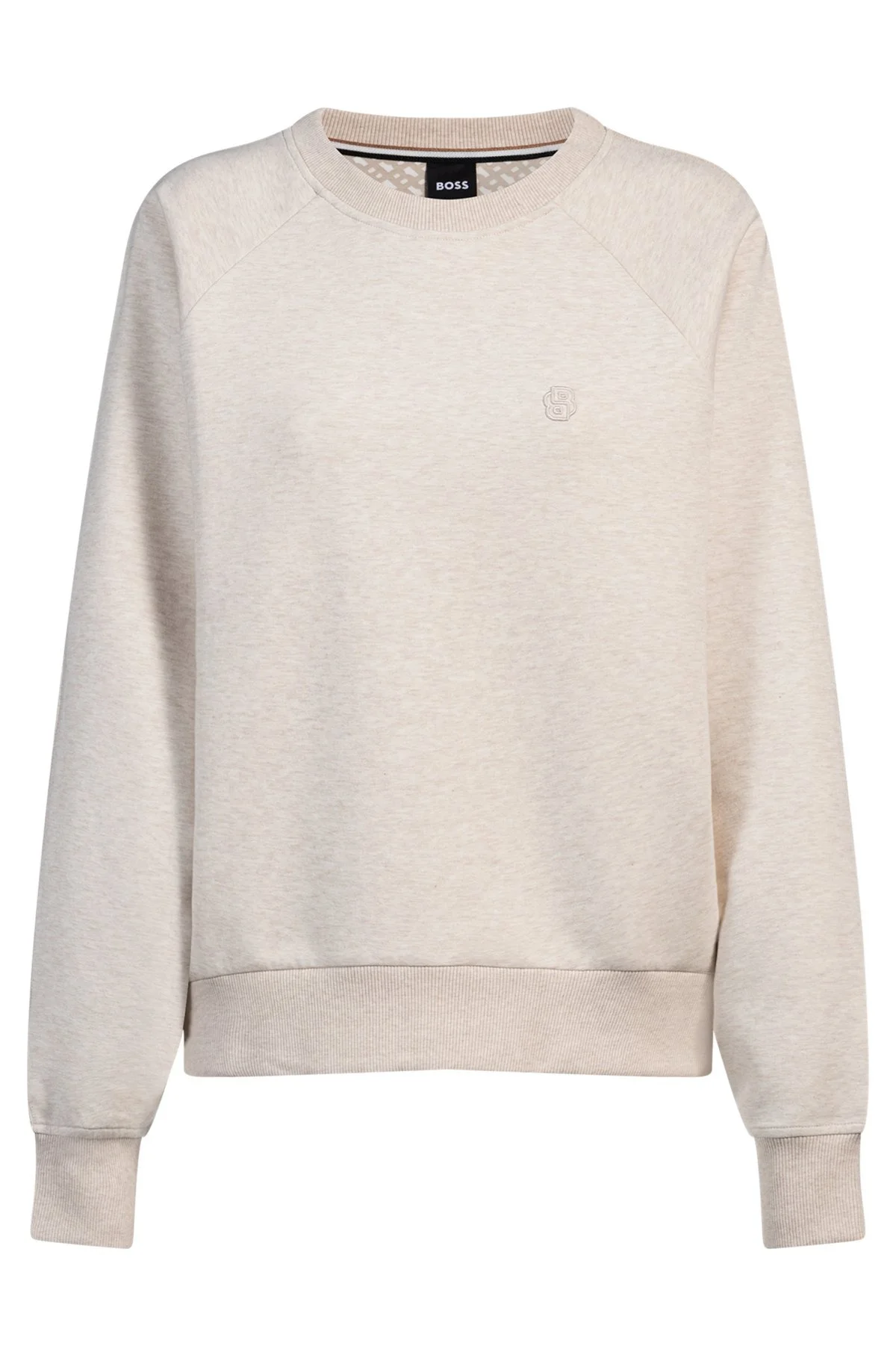 DETAILS Evreni - 50537492 With raglan sleeves for a comfortable fit, this BOSS Womenswear sweatshirt is elevated by an embroidered Double B monogram. Crafted in soft cotton. Neckline: Crew neck Long sleeves Ribbed cuffs Fit back length: 65 cm (26 inches) QUALITY & CARE INSTRUCTIONS Machine Wash Cold Gentle Do Not Tumble Dry Iron Low Heat Quality: 82% Cotton, 14% Polyester, 4% Elastane Do Not Bleach Do Not Dry Clean