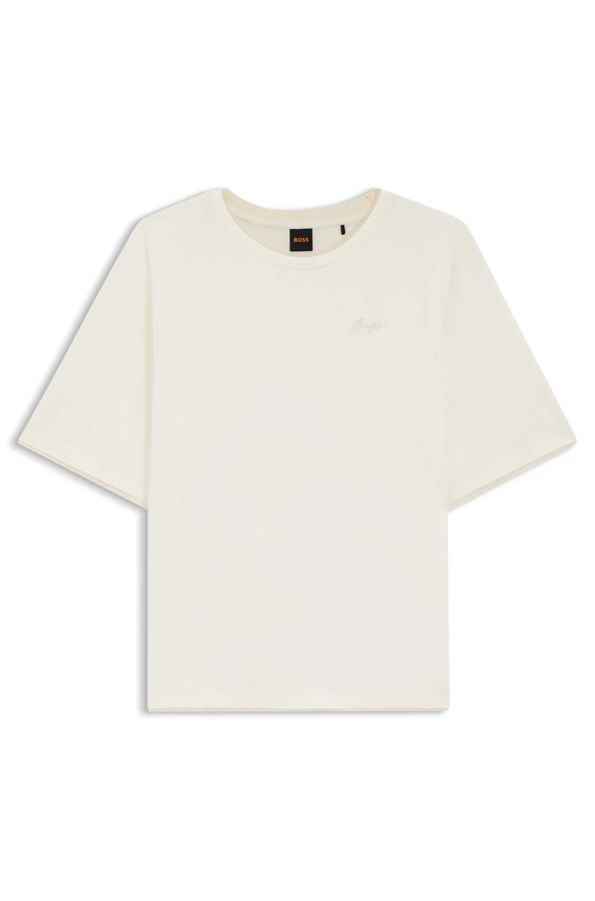 SIZE AND FIT The model wears a size S and is 5'9" tall with a, 31" chest, 24" waist and 35" hips. DETAILS Update your everyday collection with this relaxed BOSS Womenswear T-shirt featuring mesh trims. Soft cotton jersey. Handwritten-style logo. Relaxed fit Neckline: Crew neck Short sleeves Standard length C_Epliete - 50565191 QUALITY & CARE INSTRUCTIONS Machine Wash Cold Gentle Do Not Tumble Dry Iron Low Heat Do Not Dry Clean Do Not Bleach Material: 100% Cotton, Ribbing: 100% Cotton, Insert: 92% Polyamid, 8% Elastane