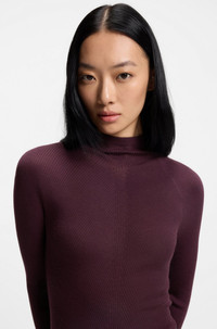 SIZE AND FIT The model wears a size S and is 5'9" tall with a, 31" chest, 23" waist and 35" hips. DETAILS With a sleek silhouette in temperature-regulating merino wool, this BOSS Womenswear sweater is perfect for layering. Knitted with mixed ribbing. Foliora - 50549166 QUALITY & CARE INSTRUCTIONS Do Not Bleach Material: 100% Virgin wool Iron Low Heat Reduced Dry Clean Hand Wash Only Do Not Tumble Dry