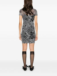 newspaper-print mesh mini dress