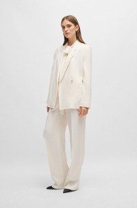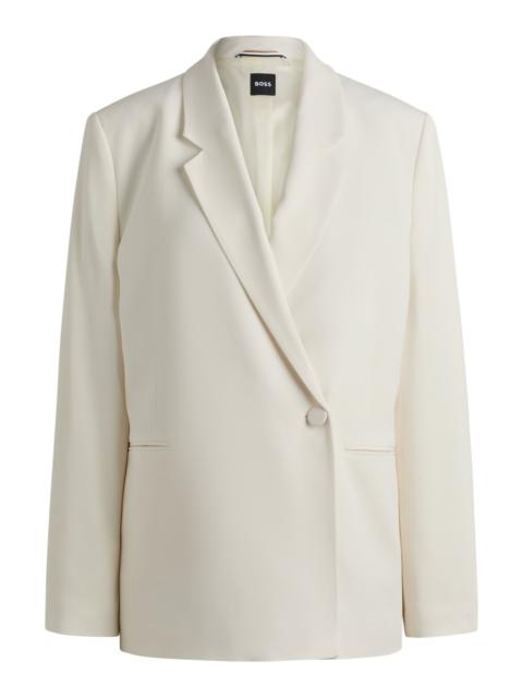 SIZE AND FIT The model wears a size 4 and is 5'8" tall with a, 30" chest, 23" waist and 35" hips. DETAILS Jozera - 50518433 A relaxed-fit jacket by BOSS Womenswear. Detailed with a feature button and tonal contrasts at the arms, this style is crafted in matte fabric. Relaxed fit Notched lapels Fastening top: Button closure Number of buttons: 1 Pockets top: Welt pockets Slit cuffs No vent Fully lined Fit back length: 70 cm (28 inches) QUALITY & CARE INSTRUCTIONS Quality: 72% Acetate, 28% Viscose, Lining: 64% Viscose, 36% Polyester Iron Low Heat Do Not Wash Reduced Dry Clean Do Not Bleach Do Not Tumble Dry