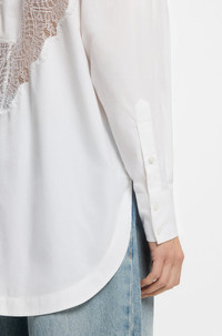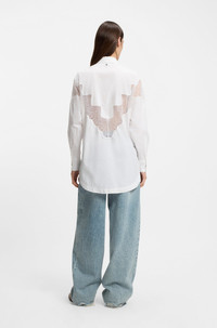 DETAILS Featuring lace details at the front and back, this BOSS Womenswear blouse is easy to style up or down. Oversize fit in soft cotton canvas. Oversized fit Point collar Long sleeves Button cuffs C_Bostuna - 50548385 QUALITY & CARE INSTRUCTIONS Machine Wash Cold Do Not Dry Clean Do Not Tumble Dry Material: 100% Cotton, Insert: 100% Polyamid Do Not Bleach Iron Low Heat