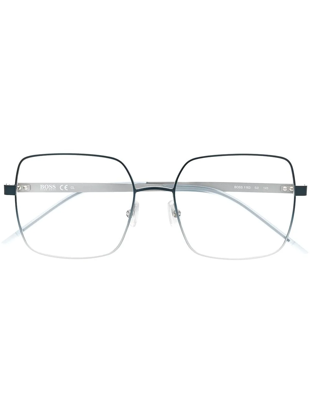 oversized-frame glasses silver-tone stainless steel/acetate gradient effect oversize frame logo-embossed arm square frame We know you'll look after them, but these glasses come with protection, just in case. Made in Italy Composition stainless steel 80%, Acetate 20% SIZE & FIT Measurement Arm Length 5.7 in(14.5 cm) Bridge Width 0.66 in(1.7 cm) Lens Diameter 2.12 in(5.4 cm) Total Width 5.31 in(13.5 cm)