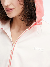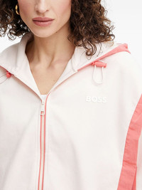 panelled hooded jacket Highlights - White and pink - Hooded neckline - Zip fastening - Elasticated hem - Panelled design - Long sleeves Imported Composition Fabric 100% Washing instructions Read Manufacturer Guidelines