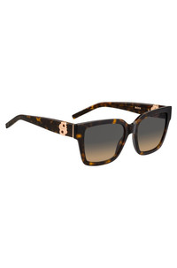 DETAILS BOSS 1744/S08654PR - 58138252 The warmly patterned acetate of these BOSS Womenswear sunglasses is punctuated by an iconic Double B monogram in a gold tone. Chunky shape, metal hinge. Front material: Acetate Temple material: Metal Hinge type: Regular Lens material: Polyester Size lens: 2.13 in (54 mm) (0 inches) Size bridge: 0.71 in (18 mm) (0 inch.) Temple Length: 5.7 in (145 mm) (0 inches)
