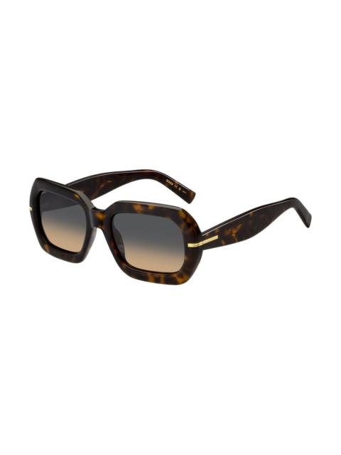 DETAILS BOSS 1732/G/S08654PR - 58138220 With gold-tone hinges bringing a touch of luxury, these BOSS Womenswear sunglasses are a statement choice. Crafted in chunky acetate with a rich pattern. Front material: Acetate Temple material: Acetate Hinge type: Regular Lens material: Polyester Size lens: 2.13 in (54 mm) (0 inches) Size bridge: 0.79 in (20 mm) (0 inch.) Temple Length: 5.7 in (145 mm) (0 inches)