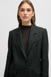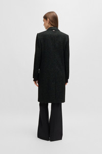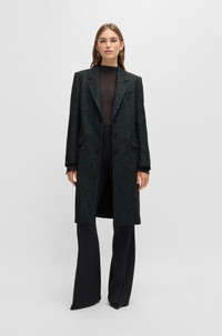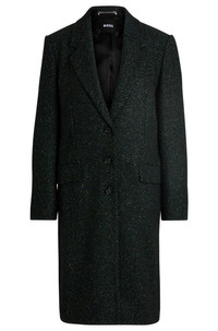 SIZE AND FIT The model wears a size 4 and is 5'8" tall with a, 30" chest, 23" waist and 35" hips. DETAILS Catara2 - 50524976 A single-breasted coat by BOSS. This slightly fitted piece – in a weighty multi-colored micro structure – is blended with wool, cotton and silk. Regular fit Notched lapels Number of buttons: 3 Pockets top: Flap pockets Kissing buttons on the cuff Back vent Fully lined Standard length Fit back length: 110 cm (43 inches) QUALITY & CARE INSTRUCTIONS Reduced Dry Clean Do Not Bleach Do Not Tumble Dry Do Not Wash Iron Low Heat Quality: 5% Silk, 44% Wool, 25% Polyester, 15% Polyacrylic, 6% Cotton, 5% Polyamid, Lining: 100% Viscose, undercollar: 67% Wool, 33% Viscose