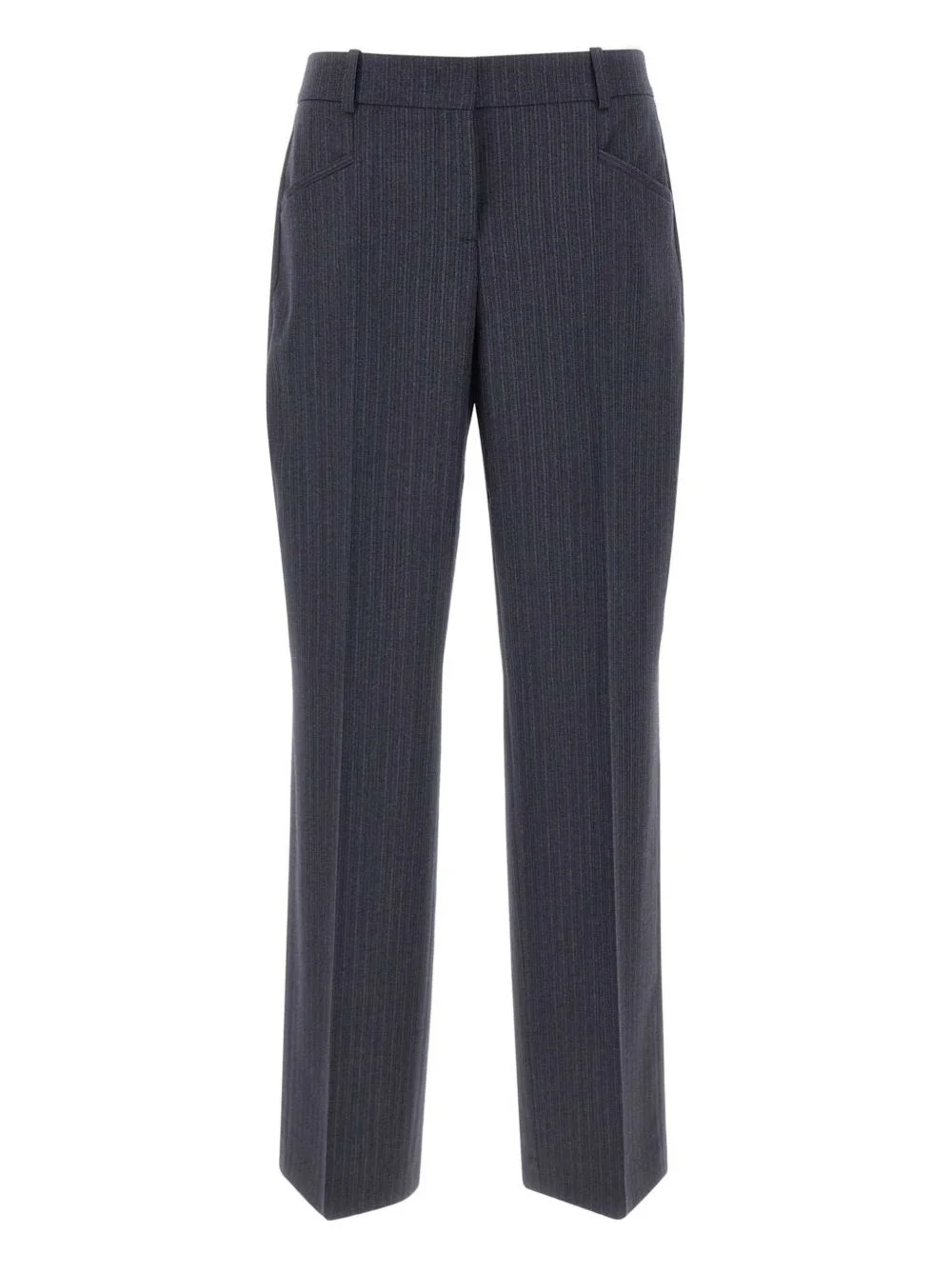 pinstripe trousers Highlights - Blue - Pinstripe pattern - Side pockets - Back pocket - Zip closure - Pressed pleat Imported Composition Wool 100% Washing instructions Read Manufacturer Guidelines