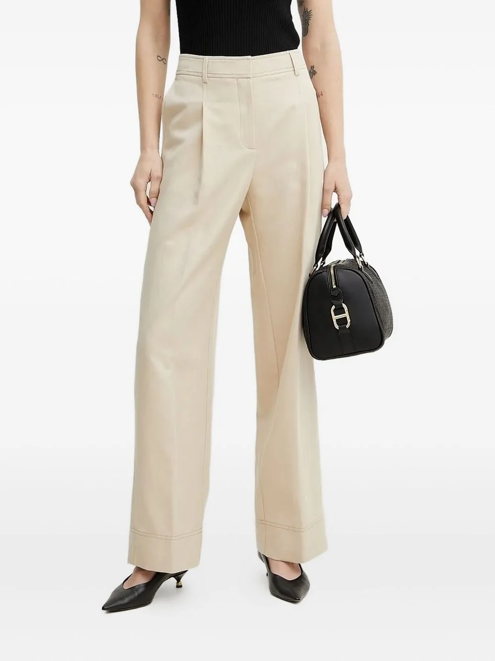 pleated high-waisted trousers Highlights - Beige - Pleated front - Belt loops - Back welt-pockets Imported Composition Outer: Lyocell 49%, Cotton 36%, Linen/Flax 15% Lining: Polyester 54%, Viscose 46% Washing instructions Read Manufacturer Guidelines