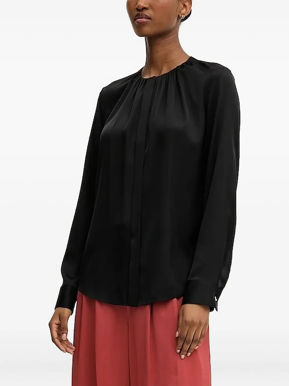 pleated round-neck blouse