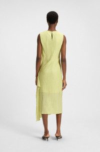 DETAILS Elanno - 50540848 This sleeveless BOSS Womenswear dress exudes modern elegance. Crafted in plisse material with a lustrous finish, this dress features layering at the skirt to ensure movement as you walk. An asymmetric hemline completes the contemporary silhouette. Regular fit Neckline: Crew neck Fastening top: Keyhole closure Number of buttons: 1 Sleeveless Fully lined Fit back length: 124 cm (49 inches) QUALITY & CARE INSTRUCTIONS Do Not Dry Clean Iron Low Heat Do Not Bleach Do Not Tumble Dry Quality: 100% Polyester, Lining: 86% Polyester, 14% Elastane Machine Wash Cold Gentle
