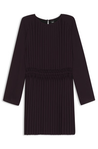 SIZE AND FIT The model wears a size 4 and is 5'9" tall with a, 32" chest, 23" waist and 35" hips. DETAILS Ideal for day or evening, this BOSS Womenswear dress combines crisp plisse pleats with elegant waistband smocking. Soft lining. Regular fit Neckline: Crew neck Fastening top: Zip and hook closure Long sleeves Fully lined Daliette - 50546801 QUALITY & CARE INSTRUCTIONS Iron Low Heat Do Not Tumble Dry Material: 100% Polyester, Lining: 100% Polyester Do Not Bleach Do Not Wash Reduced Dry Clean