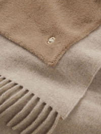 pocket-detail fringed scarf Highlights - Light brown - Fringed trim - Logo plaque - Pocket detail Imported Composition Fabric 100% Washing instructions Read Manufacturer Guidelines