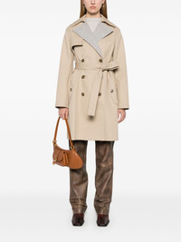Prince of Wales check trench coat Highlights - Beige - Cotton - Twill weave - Double-breasted button fastening - Notched lapels - Long sleeves - Storm flap - Belt loops - Detachable belt - Two side button-fastening pockets - Prince of wales check pattern lining - Straight hem - Above-knee length Imported Composition Cotton 100% SIZE & FIT Model measurements Height 5 ft 9 in(1.75 m) Bust/Chest 31.88 in(81 cm) Hips 34.64 in(88 cm) Waist 24.01 in(61 cm) FittingInformation Designed to be unstructured, offering a loose fit throughout The tie fastening gives an adaptable and personalised fit Made from a midweight non-stretch fabric