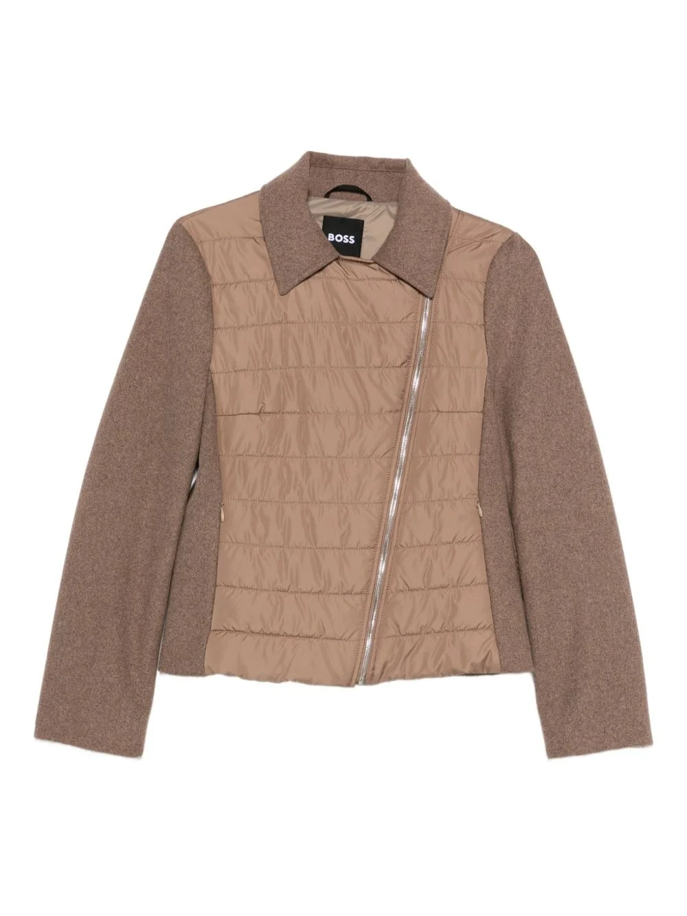 quilted bomber jacket Highlights - Beige - Quilted panels - Felted finish - Diagonal zip fastening - Pointed collar - Long sleeves Imported Composition Outer: Recycled Polyester 100% Lining: Polyamide 100% Washing instructions Dry Clean Only