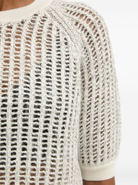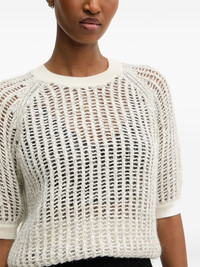 raglan-sleeve open-knit sweater Highlights - Off-white - Open knit - Raglan sleeves - Round neck - Short sleeves Imported Composition Viscose 52%, Polyamide 28%, Mohair 15%, Wool 4%, Polyester 1% Washing instructions Read Manufacturer Guidelines