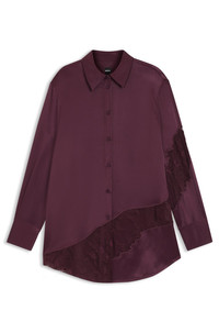 DETAILS Styled formally or pared back with denim, the satin and lace combination of this BOSS Womenswear blouse makes a modern statement. Easy straight fit. Regular fit Button-down collar Long sleeves Button cuffs Belacey - 50546595 QUALITY & CARE INSTRUCTIONS Do Not Tumble Dry Iron Low Heat Do Not Bleach Reduced Dry Clean Cold, gentle machine wash; reduced spin speed. Quality: 100% Viscose, Insert: 100% Polyamid