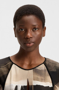 SIZE AND FIT The model wears a size 4 and is 5'10" tall with a, 31" chest, 23" waist and 35" hips. DETAILS Cut to a straight fit in stretch material with a keyhole neckline, this BOSS Womenswear blouse is easy to style. Printed with a modern motif. Slim fit Club collar Fastening top: Cufflink closure Short sleeves Fit back length: 64 cm (25 inches) Bivalia - 50543203 QUALITY & CARE INSTRUCTIONS Do Not Bleach Do Not Tumble Dry Reduced Dry Clean Iron Low Heat Do Not Wash Material: 96% Viscose, 4% Elastane, Insert: 96% Viscose, 4% Elastane