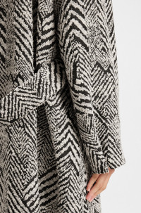 DETAILS Cavinia1 - 50548728 Designed in boucle-textured yarn blended with wool, this double-breasted BOSS Womenswear coat showcases an interesting take on the classic herringbone pattern. Regular fit Regular fit Stand collar Number of buttons: Double-breasted Pockets top: Welt pockets Button cuffs Standard length Fit back length: 110 cm (43 inches) QUALITY & CARE INSTRUCTIONS Do Not Tumble Dry Quality: 47% Polyester (10% recycled), 37% Polyacrylic, 16% Virgin wool, Lining: 55% Polyester, 45% Viscose Reduced Dry Clean Iron Low Heat Do Not Wash Do Not Bleach