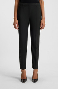 SIZE AND FIT The model wears a size 2 and is 5'9" tall with a, 31" chest, 24" waist and 35" hips. DETAILS Tilunah - 50490051 These elegantly tailored trousers by BOSS can be styled for day or night. Italian virgin wool with a high-rise waist and cropped, tapered leg. Regular fit High rise Hook and zip closure Tapered leg Crease Pockets bottom back: Welt pocket Fit foot width: 32,0 cm (12.6 inches) QUALITY & CARE INSTRUCTIONS Quality: 100% Virgin wool, pocketing: 100% Cotton Do Not Tumble Dry Do Not Bleach Do Not Wash Iron Low Heat Reduced Dry Clean