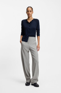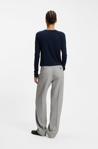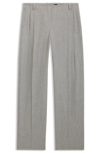SIZE AND FIT The model wears a size 4 and is 5'9" tall with a, 32" chest, 23" waist and 35" hips. DETAILS With their low rise and straight fit, these BOSS Womenswear trousers create a classic formal silhouette. Crafted in sharkskin twill blended with wool and stretch. Regular fit Low rise Hook and zip closure Straight leg Crease Pockets bottom front: Side pockets Pockets bottom back: Welt pocket with buttons Takava - 50553936 QUALITY & CARE INSTRUCTIONS Material: 56% Polyester, 24% Viscose, 18% Wool, 2% Elastane, pocketing: 55% Polyester, 45% Viscose Do Not Bleach Do Not Tumble Dry Reduced Dry Clean Iron Low Heat Do Not Wash