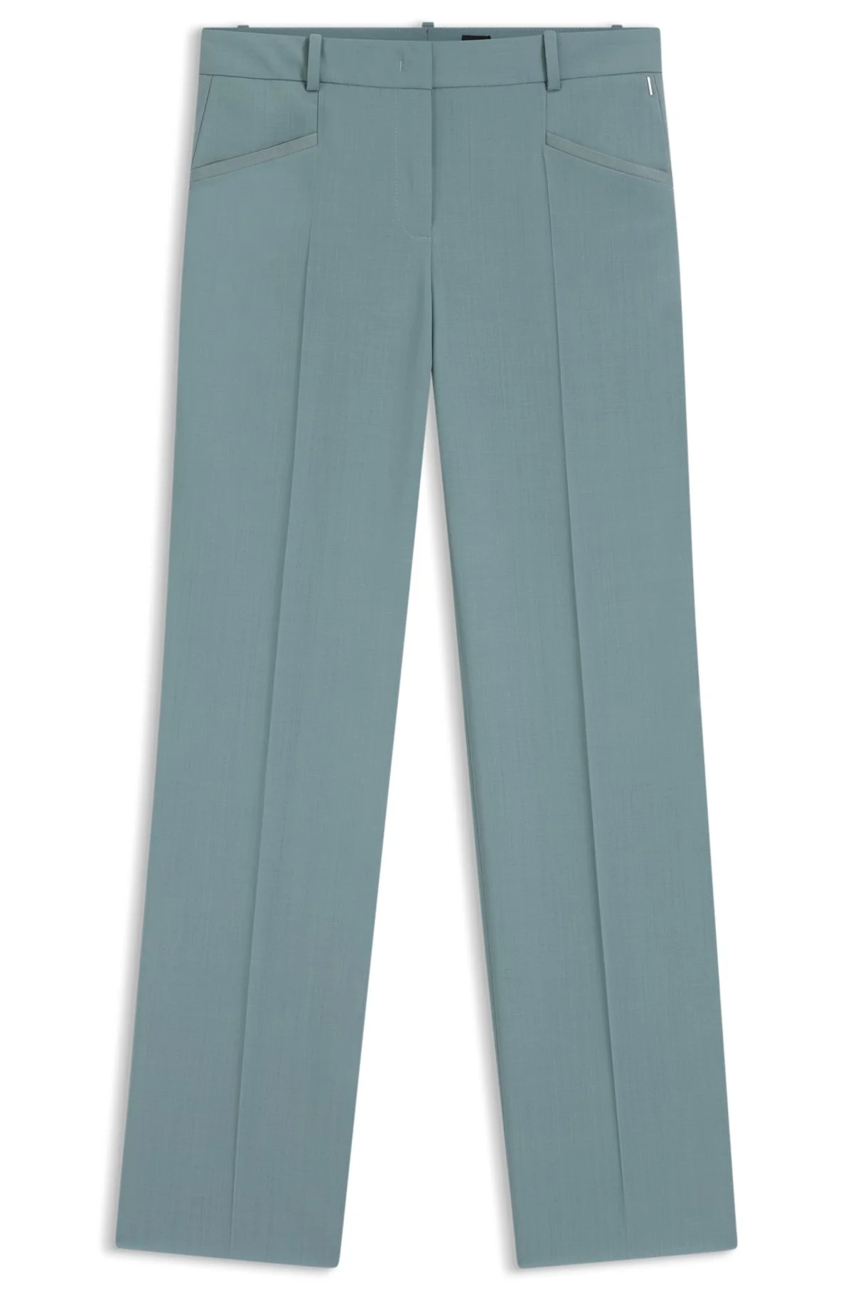 SIZE AND FIT The model wears a size 4 and is 5'9" tall with a, 31" chest, 24" waist and 35" hips. DETAILS Create plentiful formal outfits with the straight cut of these BOSS Womenswear trousers. Soft virgin wool with natural stretch for comfort. Regular fit Regular rise Hook and zip closure Straight leg Crease Pockets bottom back: Welt pocket Fit foot width: 46,0 cm (18.1 inches) Tilda9 - 50546613 QUALITY & CARE INSTRUCTIONS Material: 100% Virgin wool, pocketing: 64% Viscose, 36% Polyester Iron Low Heat Do Not Wash Reduced Dry Clean Do Not Bleach Do Not Tumble Dry