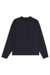 DETAILS With collarless styling and gathered details, this BOSS Womenswear blouse can be dressed up or down. Crafted in breezy cotton voile. Relaxed fit Relaxed fit Stand collar Long sleeves Barrel cuffs Fit back length: 60 cm (24 inches) C_Bizzan - 50540396 QUALITY & CARE INSTRUCTIONS Hand Wash Only Material: 100% Cotton Do Not Tumble Dry Iron Low Heat Do Not Bleach Dry Clean Only