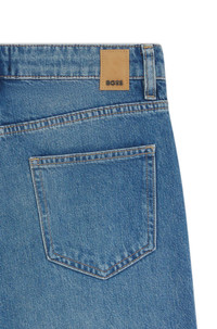 SIZE AND FIT The model wears a size 27/32 and is 5'9" tall with a, 32" chest, 23" waist and 35" hips. DETAILS CROSSROAD-BF - 50545011 Cut to a relaxed fit, these BOSS Womenswear jeans embrace a modern silhouette with their stepped hems. Authentic rigid indigo denim with a soft feel. Relaxed fit Mid rise Button and zip closure Pockets bottom front: Side pockets Straight leg Pockets bottom back: Patch pocket Open length QUALITY & CARE INSTRUCTIONS Do Not Tumble Dry Machine Wash Cold Gentle Quality: 64% Cotton, 36% Lyocell, pocketing: 70% Cotton, 30% Polyester Iron Medium Heat Do Not Bleach Do Not Dry Clean