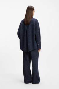 DETAILS Crafted in denim-look tweed with cotton, this BOSS Womenswear overshirt is easy to style up or down. Effortless relaxed fit. Add the matching trousers. Relaxed fit Fastening top: Press-stud closure Number of buttons: 4 or more buttons Pockets top: Seam pocket Button cuffs C_Jatessa - 50551844 QUALITY & CARE INSTRUCTIONS Iron Low Heat Do Not Bleach Do Not Wash Material: 40% Polyacrylic, 29% Cotton, 23% Polyester, 7% Viscose, 1% Elastane, Lining: 100% Viscose Do Not Tumble Dry Dry Clean Only