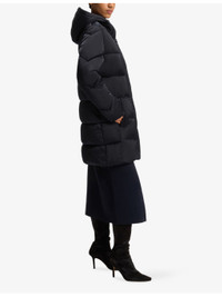 PRODUCT DETAILS - BOSS shell coat - 100% polyester - Zip fastening - Relaxed fit, hood, funnel neck, long sleeves, side pockets, padded - Dry clean - True to size - Model is 5ft 10in/1.78m and wears a size UK 8 - Heavyweight, non-stretch Ref: R04512353