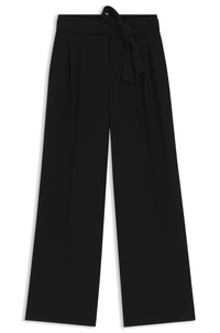 SIZE AND FIT The model wears a size 4 and is 5'10" tall with a, 0" chest, 24" waist and 35" hips. DETAILS Tapiana - 50479405 Chic crease-resistant trousers in Japanese crepe by BOSS Womenswear. This wide-leg belted pair is cut to a relaxed fit with a pleat front. Relaxed fit High rise Zip closure Wide leg Pleat front Pockets bottom front: French pocket Pockets bottom back: Welt pocket Fit foot width: 55,0 cm (21.7 inches) QUALITY & CARE INSTRUCTIONS Reduced Dry Clean Do Not Bleach Do Not Tumble Dry Quality: 69% Triacetate, 31% Polyester, pocketing: 100% Cotton Iron Low Heat Machine Wash Cold Gentle