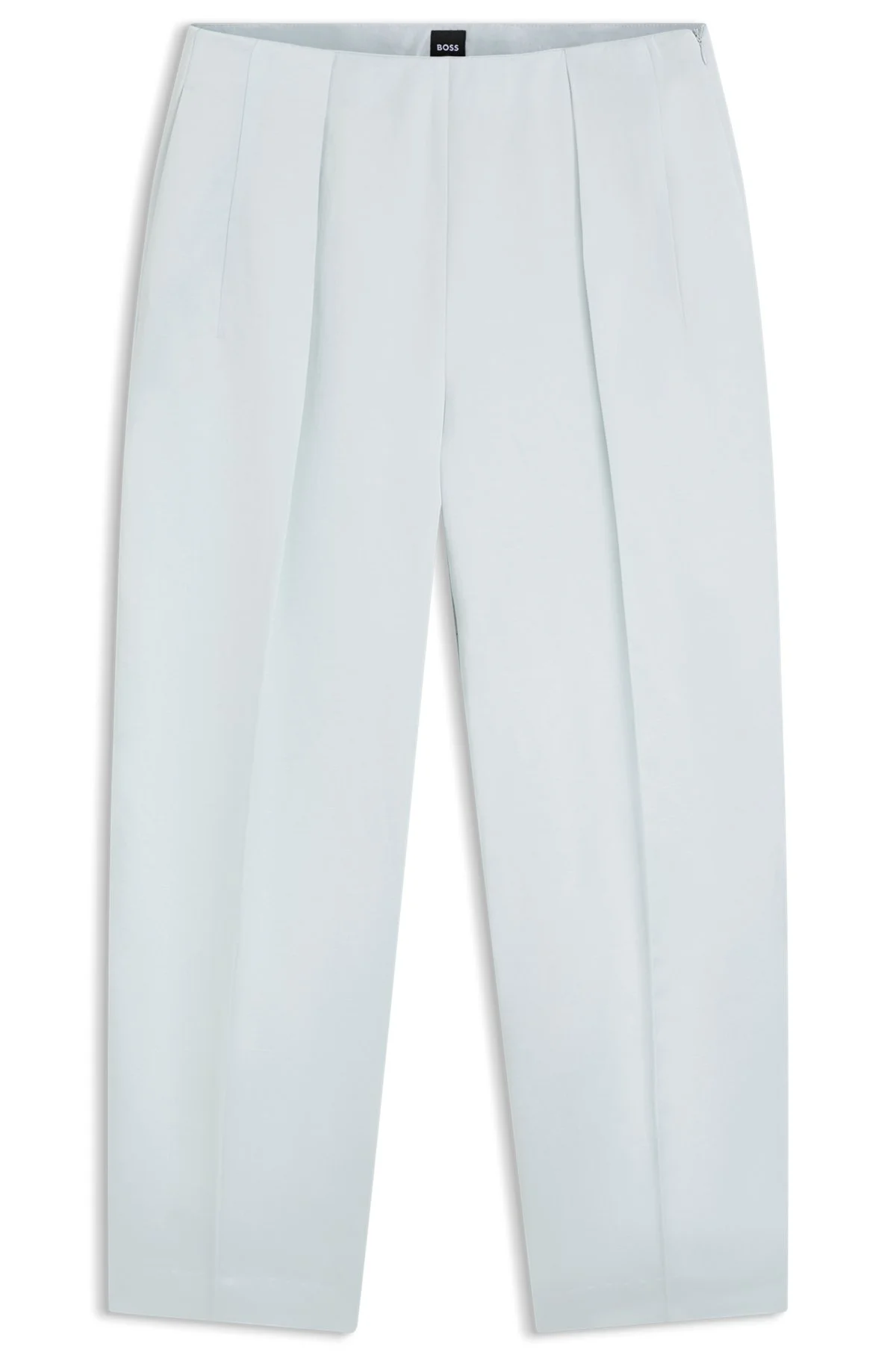 SIZE AND FIT Relaxed fit The model wears a size 4 and is 5'10" tall with a, 33" chest, 24" waist and 35" hips. DETAILS With a cropped length, relaxed fit and front pleats, these BOSS Womenswear trousers have a fresh silhouette. Soft sateen with cotton and linen. Relaxed fit High rise Zip closure Tapered leg Crease Pockets bottom front: Side pockets Pockets bottom back: Jetted pockets Fit foot width: 42,0 cm (16.5 inches) Taphea - 50558313 QUALITY & CARE INSTRUCTIONS Iron Low Heat Material: 46% Viscose, 32% Cotton, 22% Linen, Lining: 55% Polyester, 45% Viscose Do Not Wash Do Not Bleach Reduced Dry Clean Do Not Tumble Dry