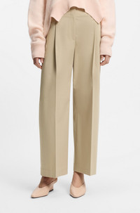 SIZE AND FIT The model wears a size 4 and is 5'9" tall with a, 31" chest, 24" waist and 35" hips. DETAILS Cropped and pleated, these relaxed-fit, high-waisted BOSS Womenswear trousers create a modern profile. Crafted in cotton with added stretch for comfort. Straight leg Relaxed fit High rise Hook and zip closure Straight leg Pleat front Pockets bottom front: French pocket Pockets bottom back: Welt pocket Fit foot width: 56,0 cm (22.0 inches) Tulotta - 50551913 QUALITY & CARE INSTRUCTIONS Iron Low Heat Do Not Bleach Material: 97% Cotton, 3% Elastane, pocketing: 100% Cotton Machine Wash Cold Gentle Do Not Tumble Dry Reduced Dry Clean
