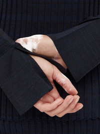 ribbed long-sleeve sweater Highlights - Dark blue - Ribbed knit - Long sleeves - Scoop-neck Imported Composition Recycled Viscose 86%, Polyamide 12%, Elastane 2% Washing instructions Read Manufacturer Guidelines