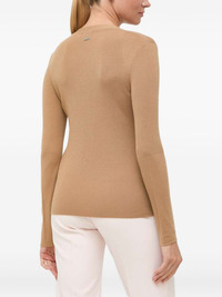 ribbed V-neck sweater Highlights - Beige - Ribbed texture - V-neck - Button placket - Long sleeve Imported Composition Polyacrylic 40%, Wool 39%, Polyamide 18%, Elastane 3% Washing instructions Read Manufacturer Guidelines