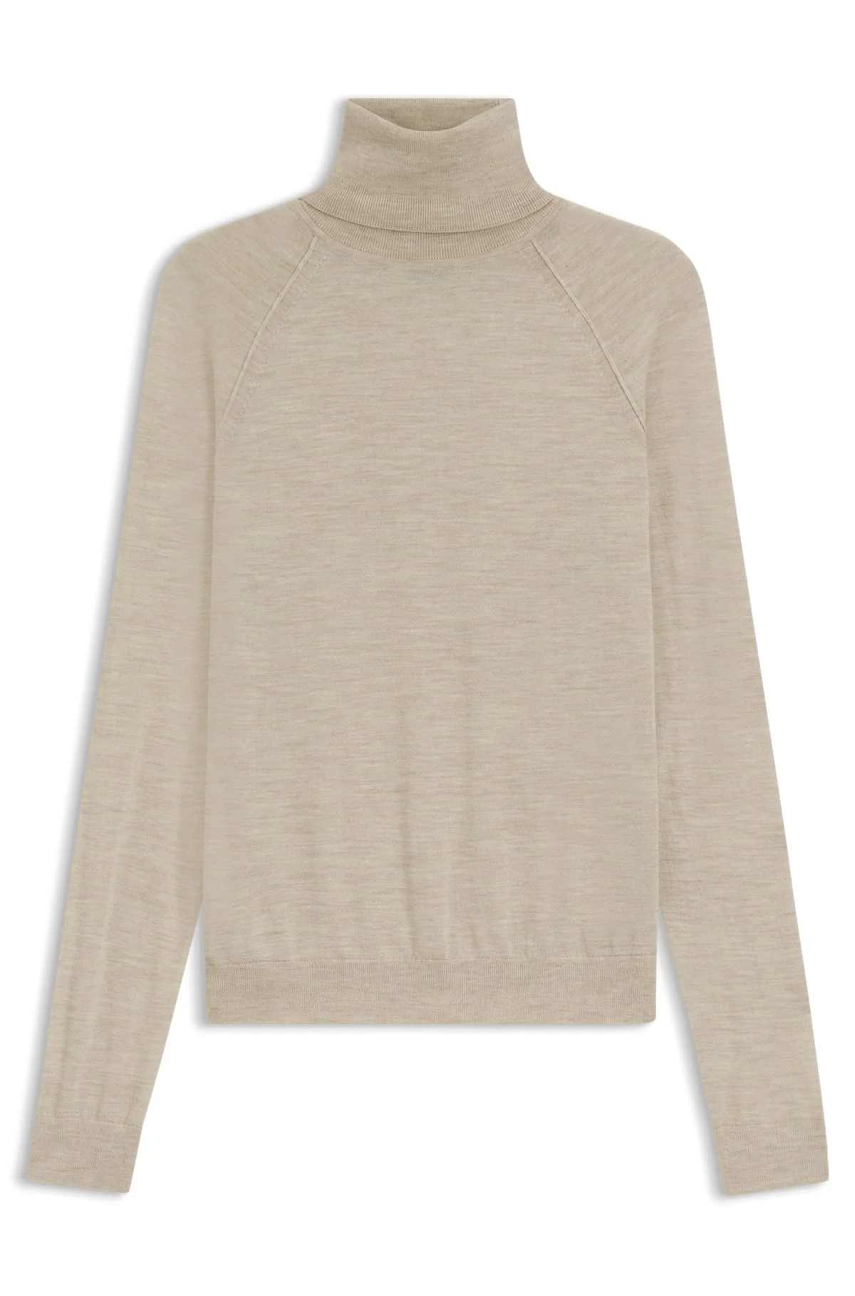 SIZE AND FIT The model wears a size S and is 5'10" tall with a, 33" chest, 23" waist and 34" hips. DETAILS Offering endless layering options, this BOSS Womenswear sweater is knitted in superfine merino wool for natural temperature regulation and breathability. Sleek rollneck profile. Slim fit Neckline: Turtleneck Long sleeves Frizani - 50548298 QUALITY & CARE INSTRUCTIONS Material: 100% Virgin wool Iron Low Heat Reduced Dry Clean Hand Wash Only Do Not Bleach Do Not Tumble Dry