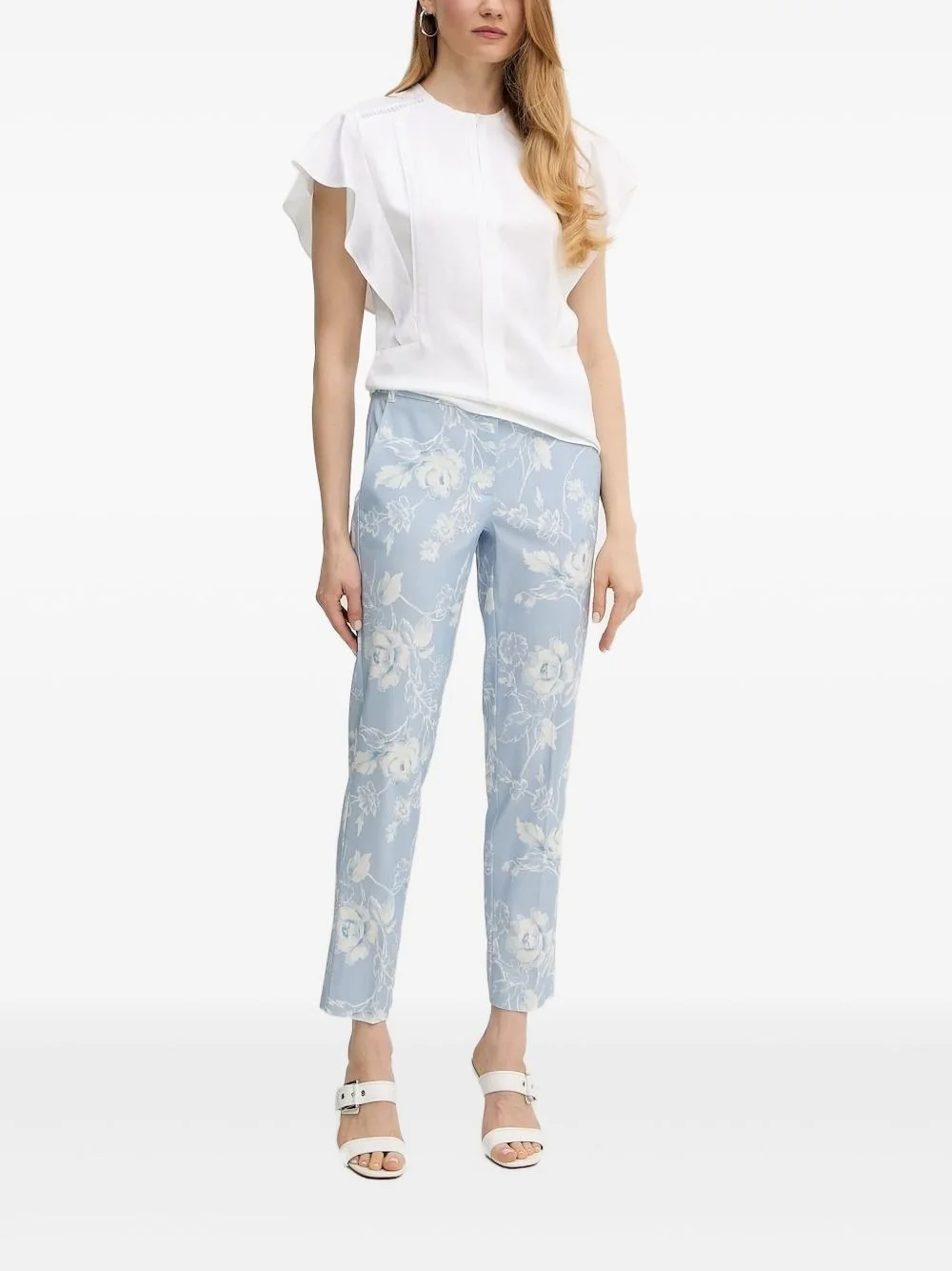 ruffled-sleeve blouse Highlights - White - Ruffled sleeves - Round neck - Perforated detail Imported Composition Viscose 59%, Linen/Flax 41% Washing instructions Read Manufacturer Guidelines